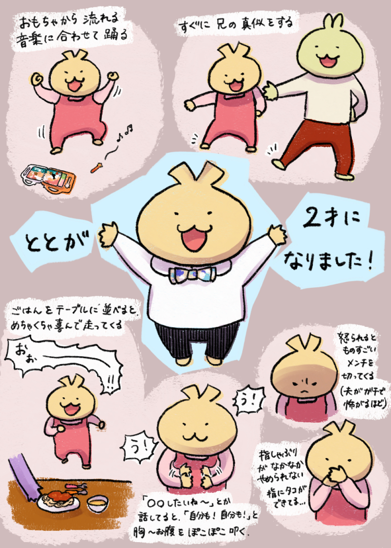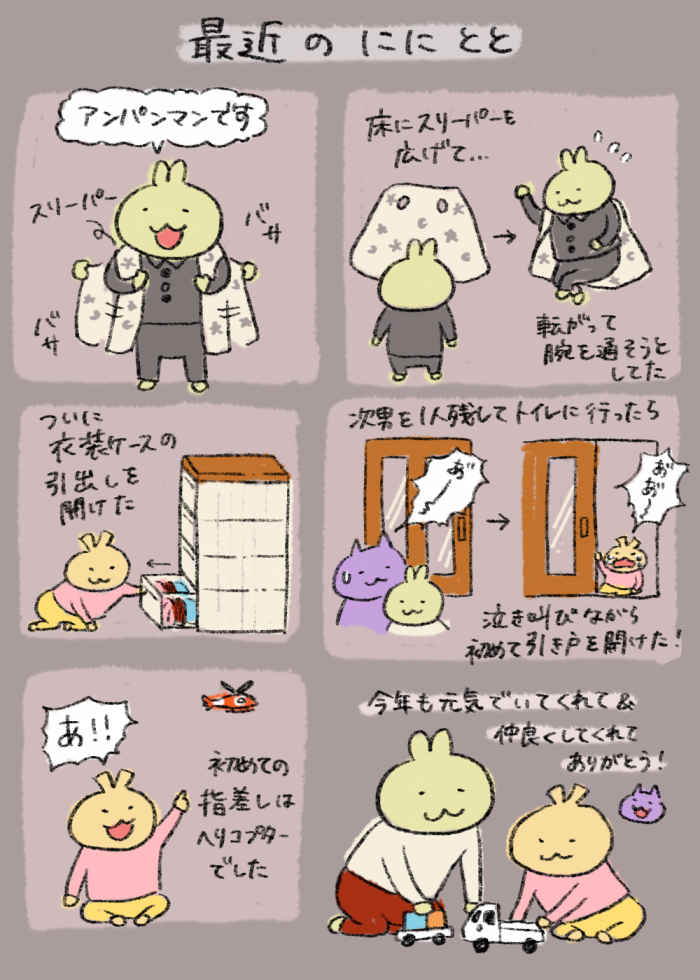 ここにはデジタルで描いた絵や、息子たち(にに(兄・2017年生まれ)&とと(弟・2019年生まれ))の成長記録などを置いています。